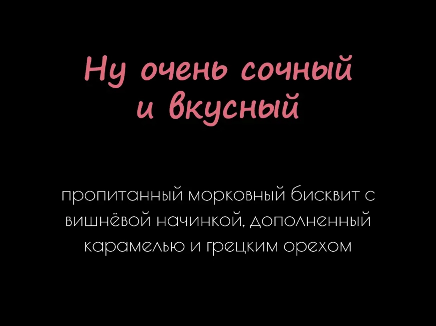 красный бархат клубника, сникерс, клубника-ваниль, морковный с вишней и карамелью.